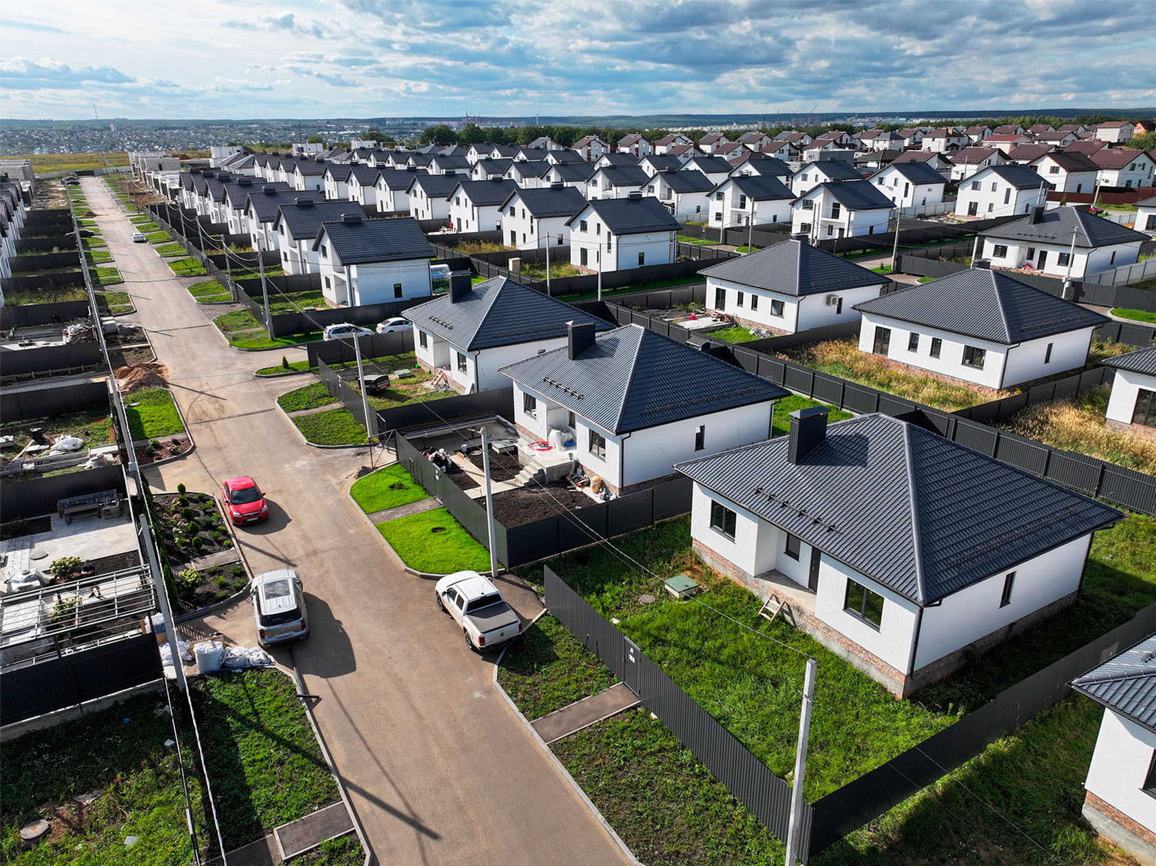 все дороги и заезды к домам заасфальтированы, с установкой бордюров. Вдоль дорог обустроены широкие тротуары